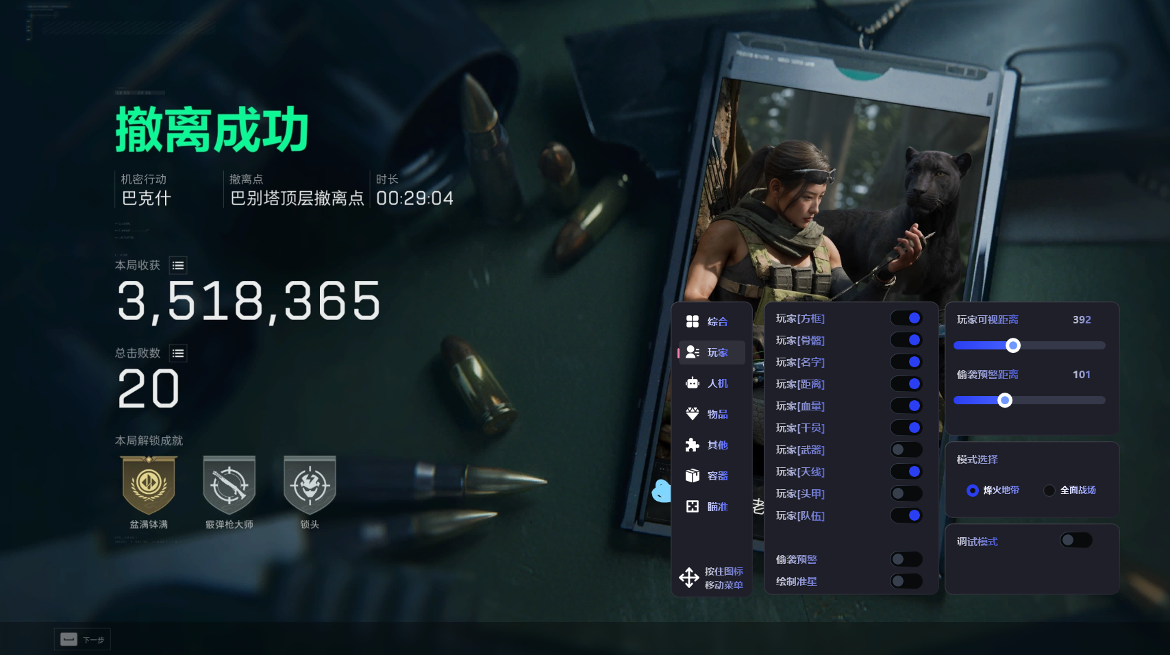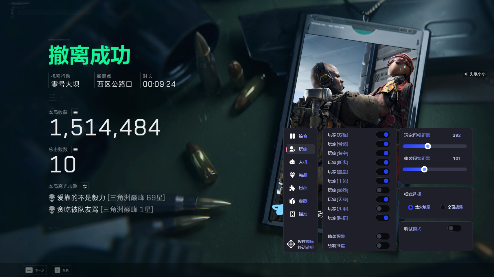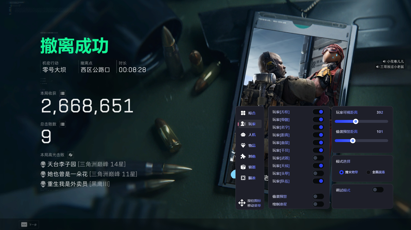 11.4号 三角洲全功能【律令】兼容全系统 自带网截稳定乱踢 过玄武磐石 防录屏过直播 大地图雷达 自瞄 高价值物品 全信息绘制自定义颜色 独家过检测 不卡不掉帧